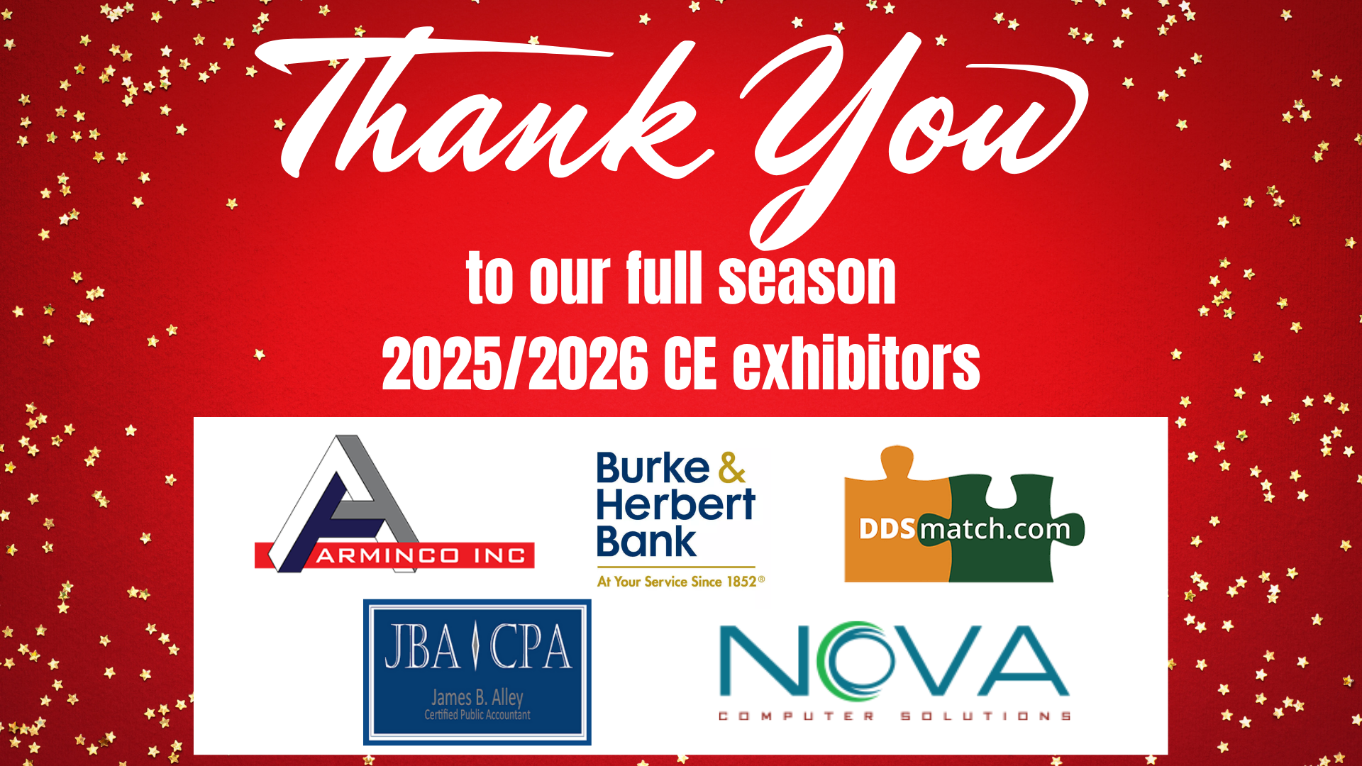 Northern Virginia Dental Society is an ADA CERP recognized provider approved by Virginia Dental Association. ADA CERP is a service of the American Dental Association to assist dental professionals in identifying quality providers of continuing education. ADA CERP does not approve of endorse individual courses or instructors, nor does it imply acceptance of credit hours by boards of dentistry. NVDS designates the above activities for the number of continuing education credits listed above. Concerns of complaints about a CE provider may be directed to the provider or to ADA CERP at www.ada.org/cerp. Approved PACE Program Provider FAGD/MAGD Credit 4/1/2023 to 3/31/2027. Course descriptions, objective, and refund policy will follow. Approval does not imply acceptance by a state of provincial board of dentistry or AGD endorsement. None of the CPR instructors have any financial relations relevant to this course to disclose. Please feel free to contact NVDS, Libby Ross with any CERP questions at (703)642-5298 or LRoss@nvds.org